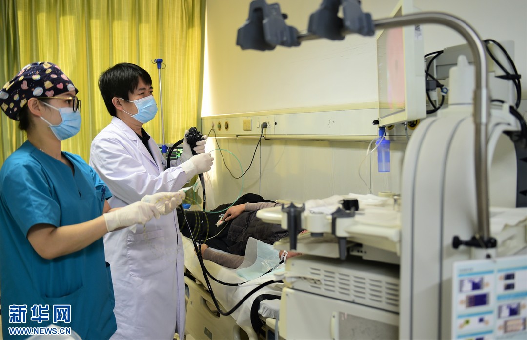 12月16日,滄州市人民醫(yī)院內鏡中心醫(yī)務人員為患者進行上消化道腫瘤篩查。新華網發(fā)(傅新春 攝)