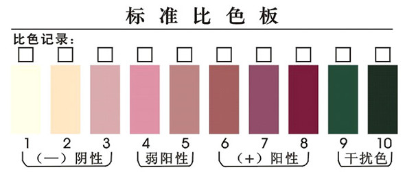 【檢驗原理】本試劑通過汞鹽與5-羥吲哚乙酸發(fā)生特征顯色反應(yīng),根據(jù)顏色的不同即可判定被測試者體內(nèi)是否有相關(guān)的異常代謝。